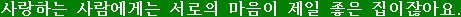 (サランハヌン サラメゲヌン ソロエ マウミ チェイル チョウン チビジャナヨ。)
