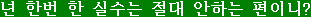 そして、最後の (ニ)が親しい間で使う疑問をあらわす語尾です。目上の人に使ってはいけません。全体をそのまま訳すと「君は一度した過ちは絶対しない方か?」といった感じですね。 これで、今日のひとことは完成です。理解していただけたでしょうか…。 |