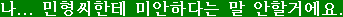 最後に単語どおりの直訳しておきましょう。「私、ミニョンさんに済まないという言葉は言いませんよ」という感じですね。もちろん普通は「済まないという言葉」なんて訳しませんが…。